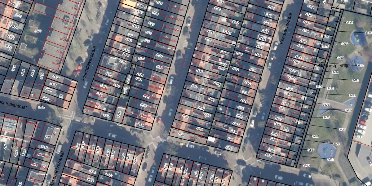 Gebruik de zoekbalk of klik op een perceel voor informatie over de adressen binnen dit perceel.
