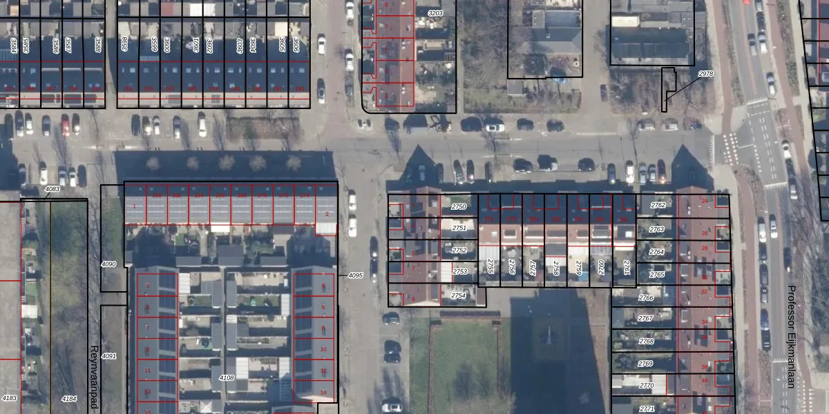 Gebruik de zoekbalk of klik op een perceel voor informatie over de adressen binnen dit perceel.