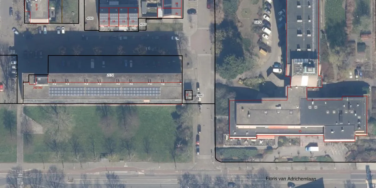 Gebruik de zoekbalk of klik op een perceel voor informatie over de adressen binnen dit perceel.