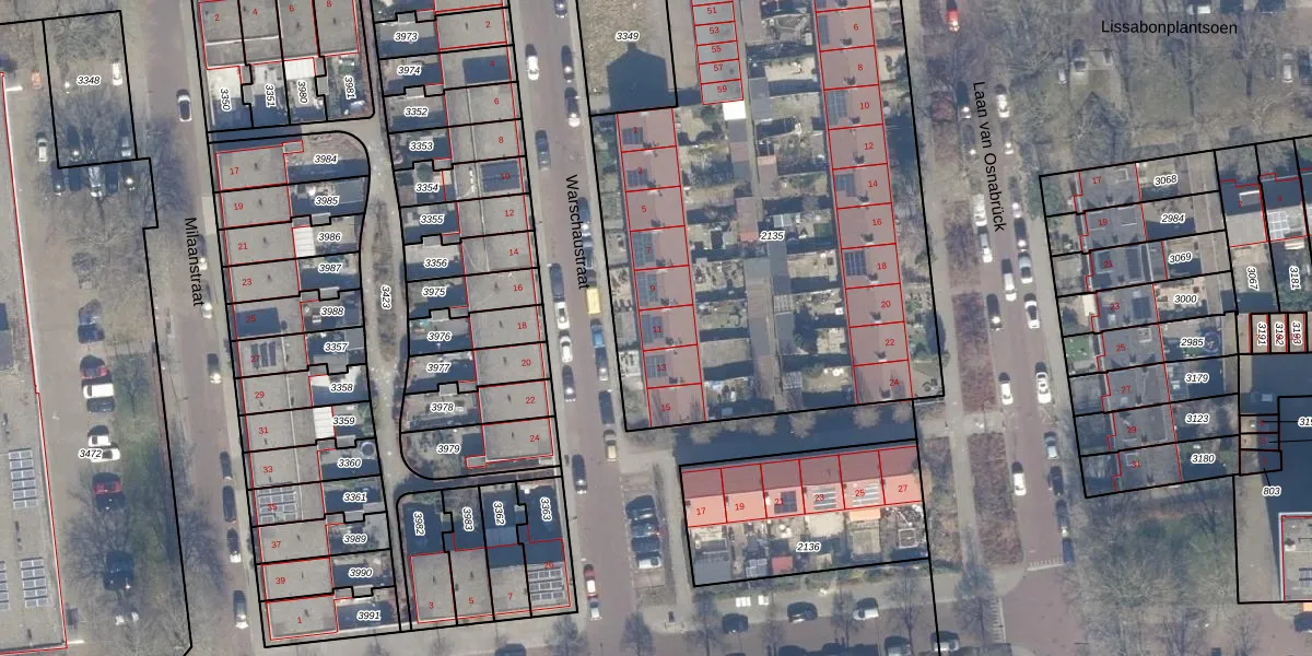 Het perceel waarop Warschaustraat 11 staat heeft een oppervlakte van 3200 m². Dit is een zeer groot perceel. De perceeloppervlakte wordt geregistreerd door het Kadaster. Gedetailleerde informatie over de maten van dit perceel kunt u vinden in het rapport Kadastrale kaart met maatvoering van Warschaustraat 11.