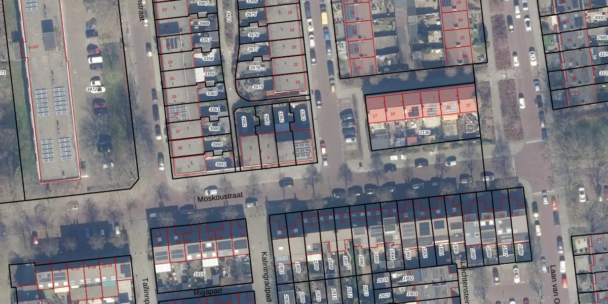 Gebruik de zoekbalk of klik op een perceel voor informatie over de adressen binnen dit perceel.