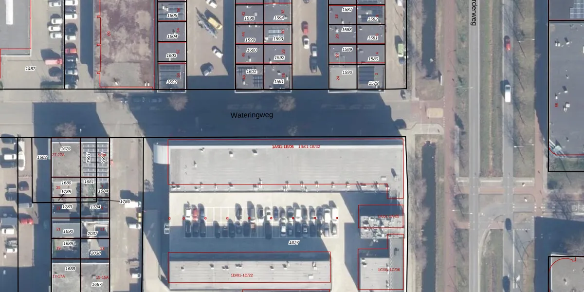 Wateringweg 1-B-08 is gelegen op kadastraal perceel HLM02N1877. Deze kadastrale aanduiding is uniek en wordt gebruikt door het Kadaster om eigendomsrechten en andere zakelijke rechten vast te leggen. Het perceel maakt onderdeel uit van de kadastrale gemeente Haarlem.