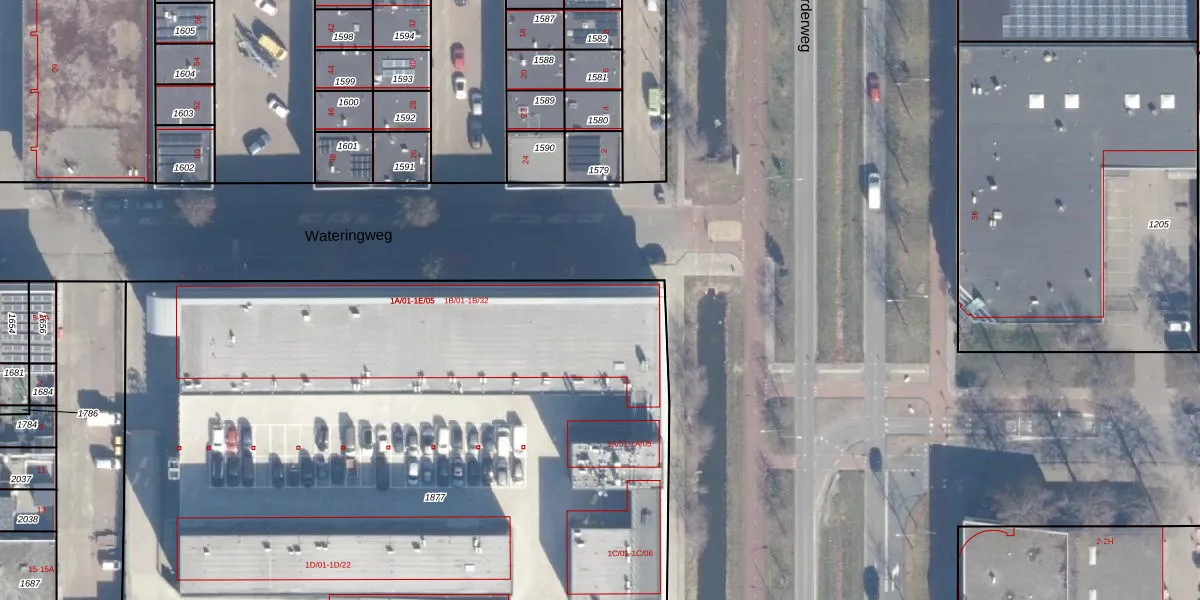 Wateringweg 1-B-14 is gelegen op kadastraal perceel HLM02N1877. Deze kadastrale aanduiding is uniek en wordt gebruikt door het Kadaster om eigendomsrechten en andere zakelijke rechten vast te leggen. Het perceel maakt onderdeel uit van de kadastrale gemeente Haarlem.