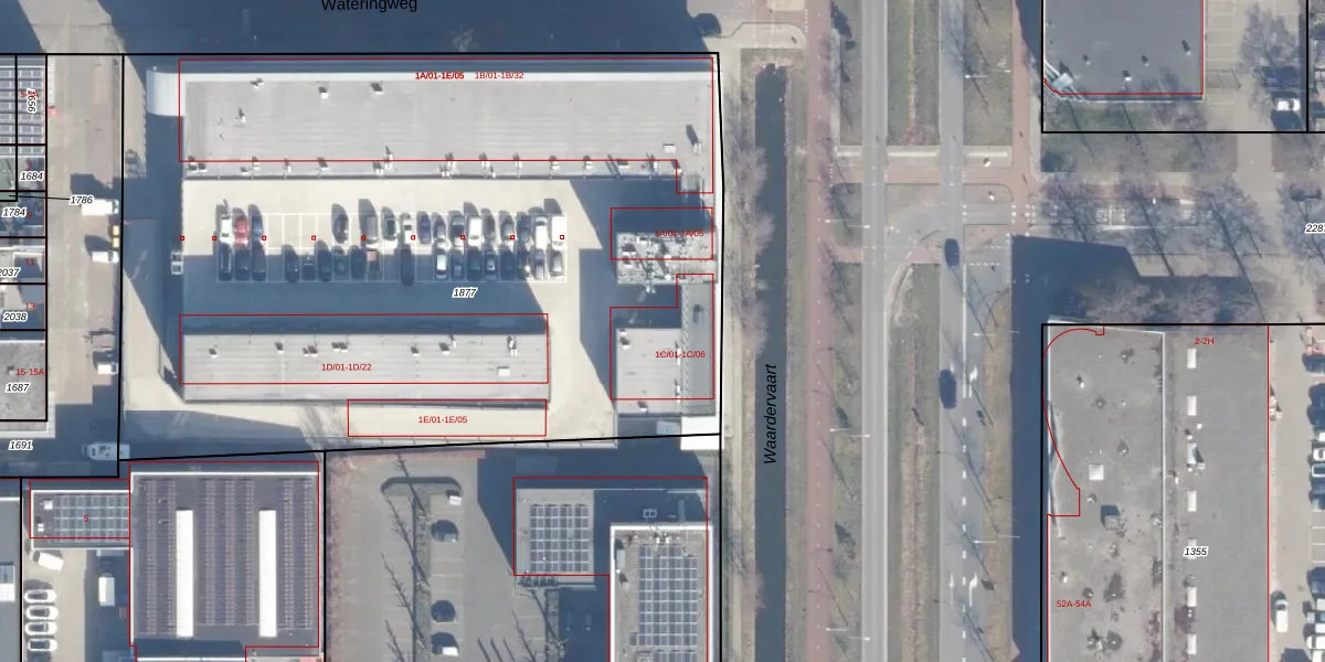 Het perceel waarop Wateringweg 1-C-05 staat heeft een oppervlakte van 5346 m². Dit is een zeer groot perceel. De perceeloppervlakte wordt geregistreerd door het Kadaster. Gedetailleerde informatie over de maten van dit perceel kunt u vinden in het rapport Kadastrale kaart met maatvoering van Wateringweg 1-C-05.