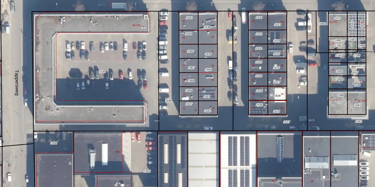 Gebruik de zoekbalk of klik op een perceel voor informatie over de adressen binnen dit perceel.