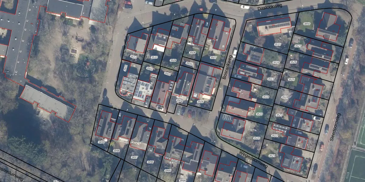 Gebruik de zoekbalk of klik op een perceel voor informatie over de adressen binnen dit perceel.