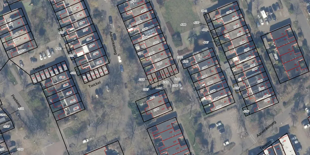 Het perceel waarop Weldam 88 staat heeft een oppervlakte van 18 m². Dit is een klein perceel. De perceeloppervlakte wordt geregistreerd door het Kadaster. Gedetailleerde informatie over de maten van dit perceel kunt u vinden in het rapport Kadastrale kaart met maatvoering van Weldam 88.