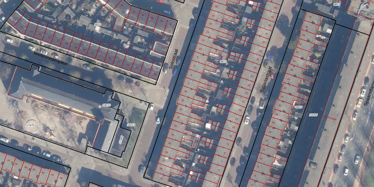 Het perceel waarop Weltevredenplein 29 staat heeft een oppervlakte van 5425 m². Dit is een zeer groot perceel. De perceeloppervlakte wordt geregistreerd door het Kadaster. Gedetailleerde informatie over de maten van dit perceel kunt u vinden in het rapport Kadastrale kaart met maatvoering van Weltevredenplein 29.