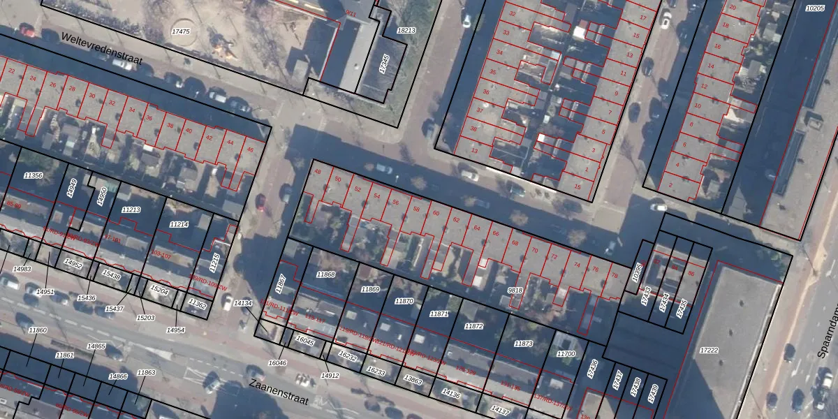 Het perceel waarop Weltevredenstraat 58 staat heeft een oppervlakte van 1565 m². Dit is een zeer groot perceel. De perceeloppervlakte wordt geregistreerd door het Kadaster. Gedetailleerde informatie over de maten van dit perceel kunt u vinden in het rapport Kadastrale kaart met maatvoering van Weltevredenstraat 58.