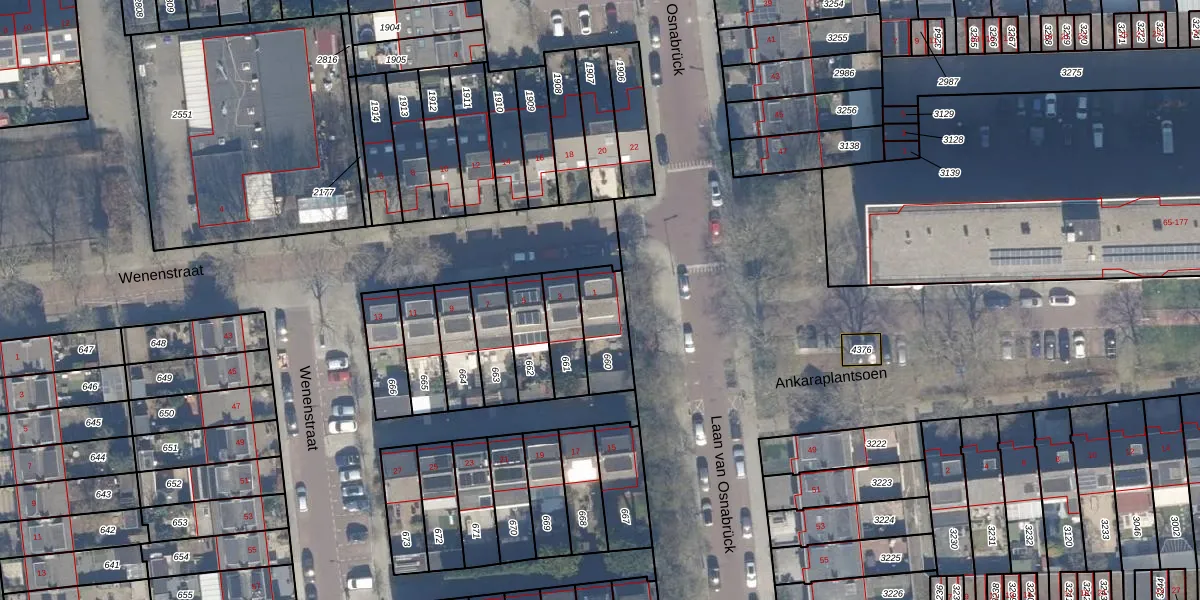 Het perceel waarop Wenenstraat 1 staat heeft een oppervlakte van 160 m². Dit is een middelgroot perceel. De perceeloppervlakte wordt geregistreerd door het Kadaster. Gedetailleerde informatie over de maten van dit perceel kunt u vinden in het rapport Kadastrale kaart met maatvoering van Wenenstraat 1.