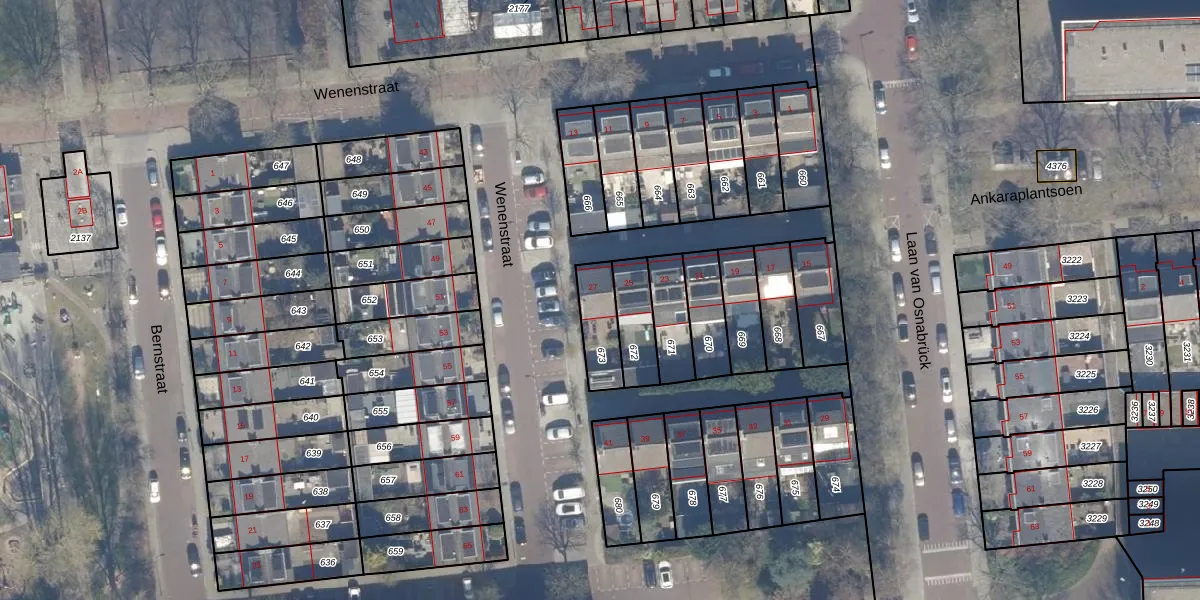 Gebruik de zoekbalk of klik op een perceel voor informatie over de adressen binnen dit perceel.