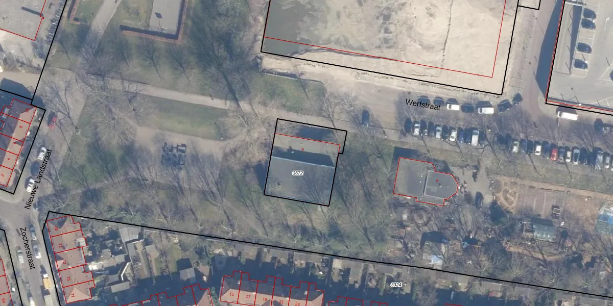 Werfstraat 6 is gelegen op kadastraal perceel HLM01G3672. Deze kadastrale aanduiding is uniek en wordt gebruikt door het Kadaster om eigendomsrechten en andere zakelijke rechten vast te leggen. Het perceel maakt onderdeel uit van de kadastrale gemeente Haarlem.