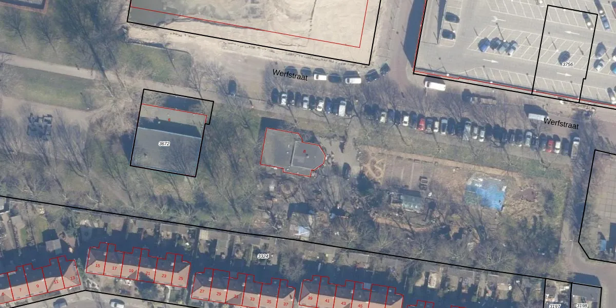 Werfstraat 8 is gelegen op kadastraal perceel HLM01G4413. Deze kadastrale aanduiding is uniek en wordt gebruikt door het Kadaster om eigendomsrechten en andere zakelijke rechten vast te leggen. Het perceel maakt onderdeel uit van de kadastrale gemeente Haarlem.