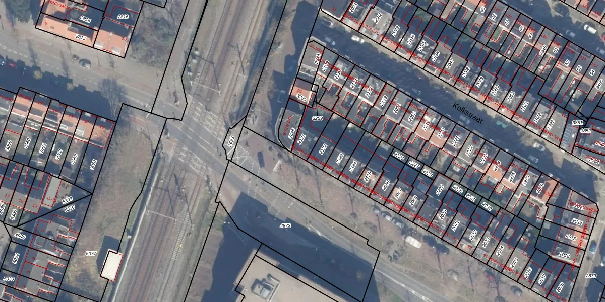 Het perceel waarop het adres ligt is HLM01-H-2121. De afkorting 'HLM01' staat voor kadastrale gemeente Haarlem. Het perceel is kleiner dan gemiddeld in Haarlem. Het perceel is 140 m² groot, terwijl het gemiddelde ligt op 328,3 m². Het grootste perceel in de kadastrale gemeente is 13,9 ha. Het kleinste perceel heeft een oppervlakte van 0 m². Op het perceel zijn 2 adressen aanwezig. In de Basisregistratie Kadaster (BRK) werden de grenzen van het perceel geregistreerd op 12-10-2001.