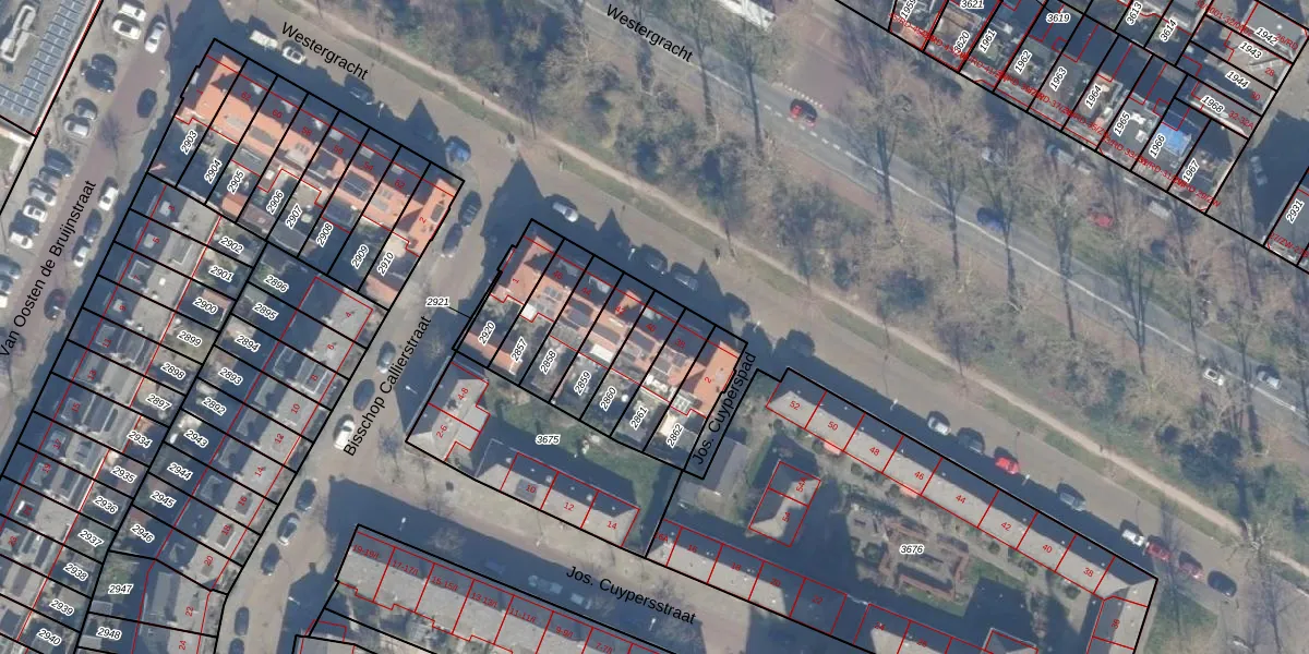 Gebruik de zoekbalk of klik op een perceel voor informatie over de adressen binnen dit perceel.
