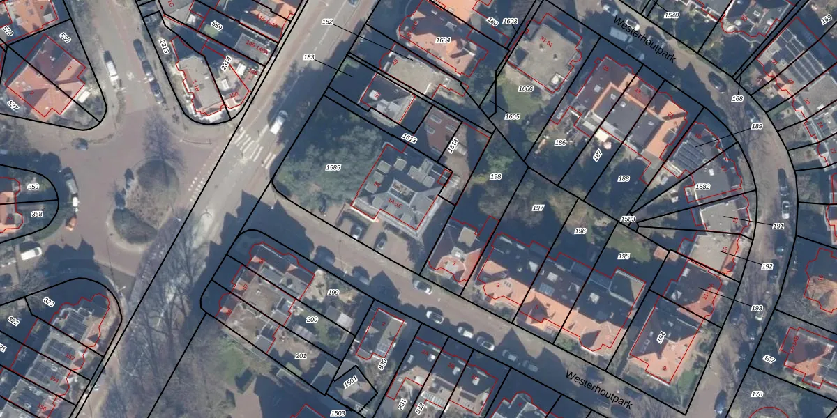 Westerhoutpark 1-B is gelegen op kadastraal perceel HLM02R1585. Deze kadastrale aanduiding is uniek en wordt gebruikt door het Kadaster om eigendomsrechten en andere zakelijke rechten vast te leggen. Het perceel maakt onderdeel uit van de kadastrale gemeente Haarlem.