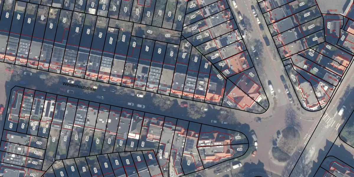 Gebruik de zoekbalk of klik op een perceel voor informatie over de adressen binnen dit perceel.