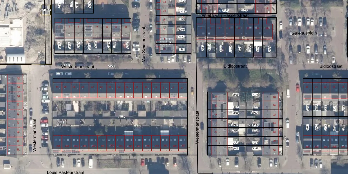 Het perceel waarop Westermanstraat 4 staat heeft een oppervlakte van 3405 m². Dit is een zeer groot perceel. De perceeloppervlakte wordt geregistreerd door het Kadaster. Gedetailleerde informatie over de maten van dit perceel kunt u vinden in het rapport Kadastrale kaart met maatvoering van Westermanstraat 4.