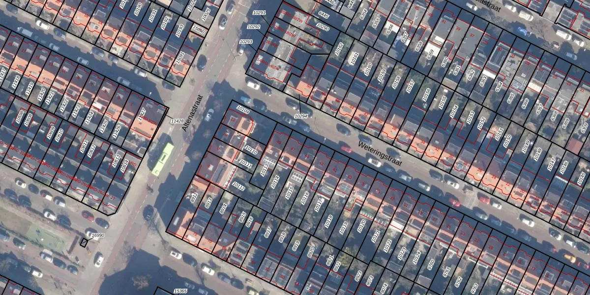 Gebruik de zoekbalk of klik op een perceel voor informatie over de adressen binnen dit perceel.