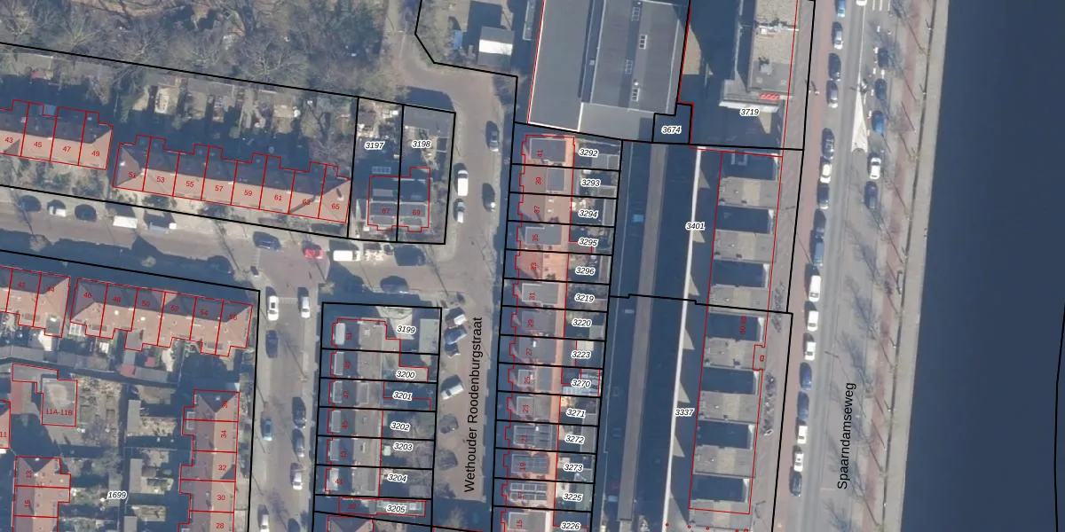 Wethouder Roodenburgstraat 33 is gelegen op kadastraal perceel HLM01G3296. Deze kadastrale aanduiding is uniek en wordt gebruikt door het Kadaster om eigendomsrechten en andere zakelijke rechten vast te leggen. Het perceel maakt onderdeel uit van de kadastrale gemeente Haarlem.