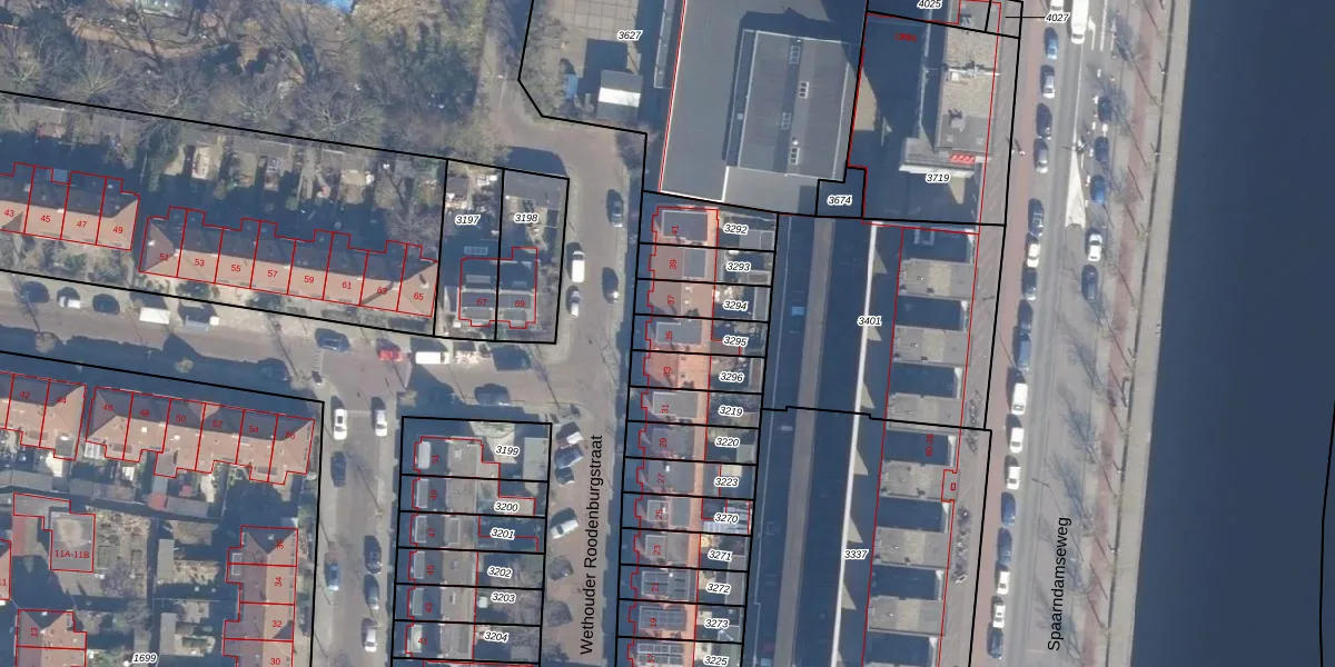 Wethouder Roodenburgstraat 35 is gelegen op kadastraal perceel HLM01G3295. Deze kadastrale aanduiding is uniek en wordt gebruikt door het Kadaster om eigendomsrechten en andere zakelijke rechten vast te leggen. Het perceel maakt onderdeel uit van de kadastrale gemeente Haarlem.