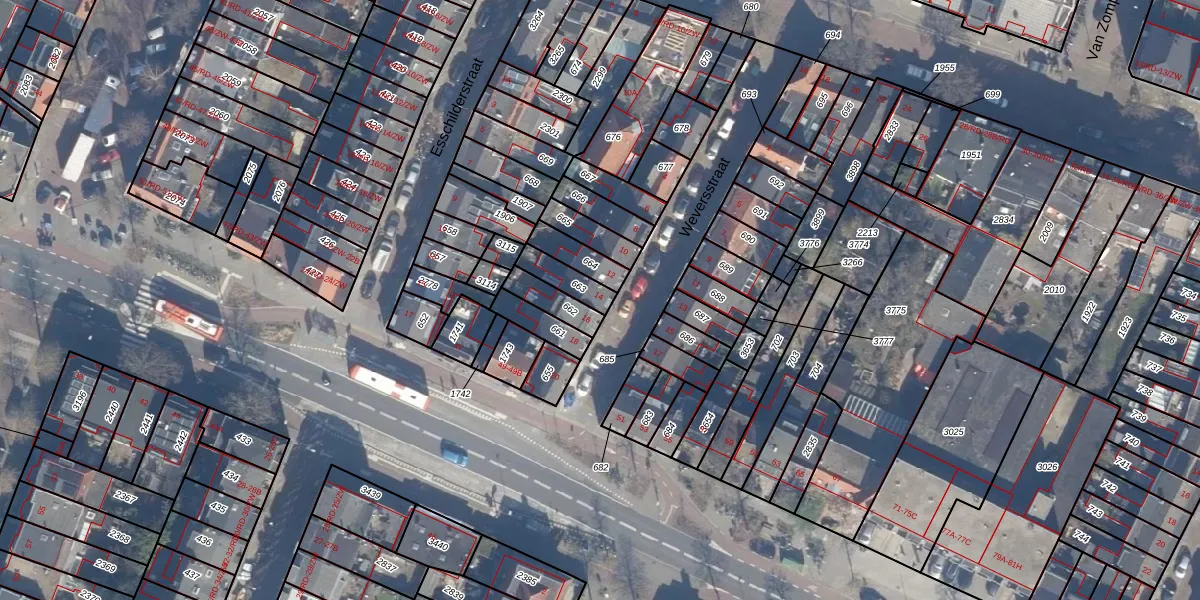 Gebruik de zoekbalk of klik op een perceel voor informatie over de adressen binnen dit perceel.