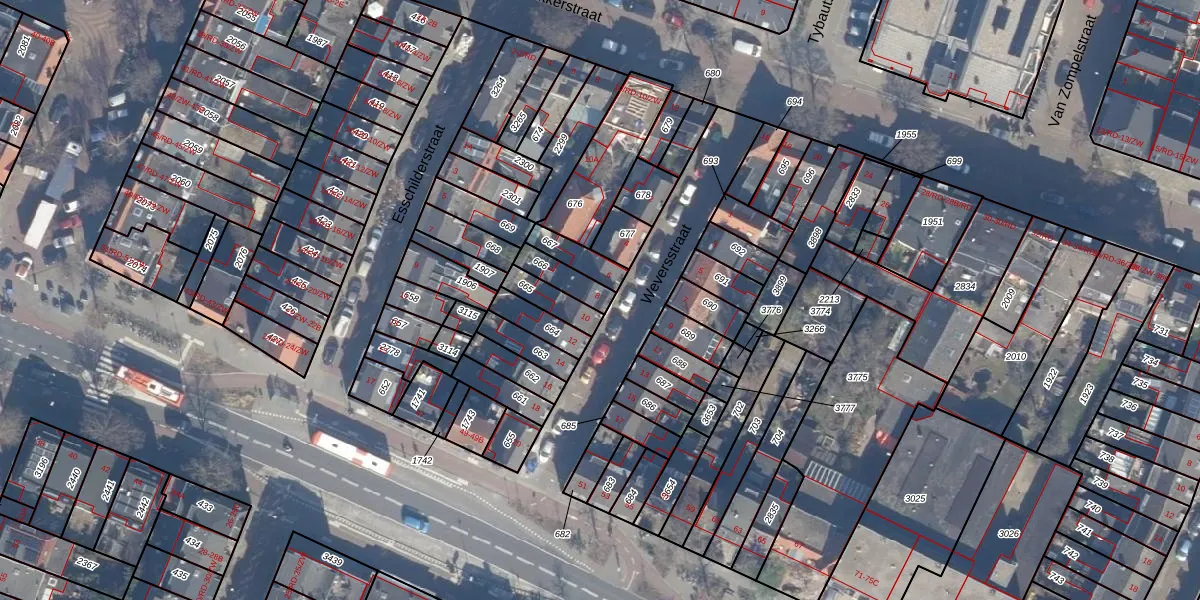 Gebruik de zoekbalk of klik op een perceel voor informatie over de adressen binnen dit perceel.