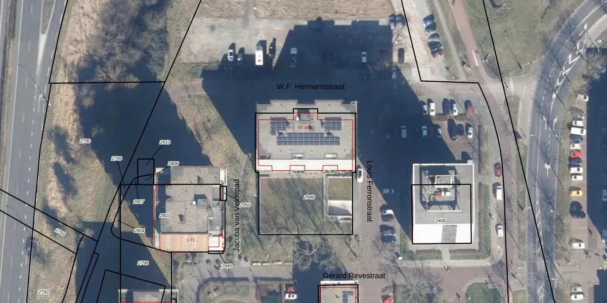 Het perceel waarop W.F. Hermansstraat 137 staat heeft een oppervlakte van 1293 m². Dit is een zeer groot perceel. De perceeloppervlakte wordt geregistreerd door het Kadaster. Gedetailleerde informatie over de maten van dit perceel kunt u vinden in het rapport Kadastrale kaart met maatvoering van W.F. Hermansstraat 137.