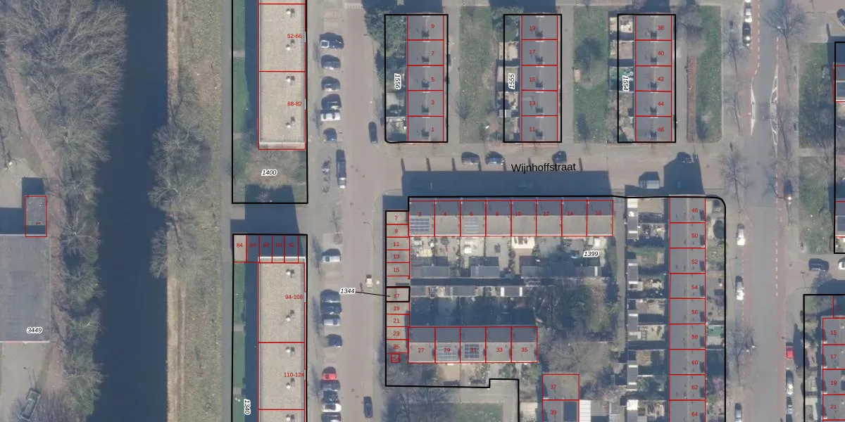 Het perceel waarop Wijnhoffstraat 2 staat heeft een oppervlakte van 5615 m². Dit is een zeer groot perceel. De perceeloppervlakte wordt geregistreerd door het Kadaster. Gedetailleerde informatie over de maten van dit perceel kunt u vinden in het rapport Kadastrale kaart met maatvoering van Wijnhoffstraat 2.