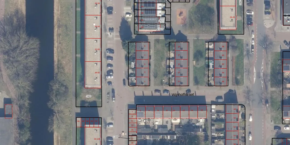 Het perceel waarop Wijnhoffstraat 3 staat heeft een oppervlakte van 443 m². Dit is een groot perceel. De perceeloppervlakte wordt geregistreerd door het Kadaster. Gedetailleerde informatie over de maten van dit perceel kunt u vinden in het rapport Kadastrale kaart met maatvoering van Wijnhoffstraat 3.
