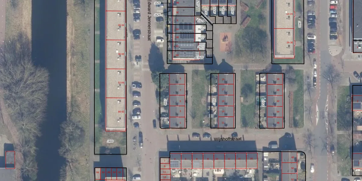 Het perceel waarop Wijnhoffstraat 7 staat heeft een oppervlakte van 443 m². Dit is een groot perceel. De perceeloppervlakte wordt geregistreerd door het Kadaster. Gedetailleerde informatie over de maten van dit perceel kunt u vinden in het rapport Kadastrale kaart met maatvoering van Wijnhoffstraat 7.