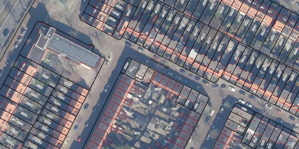 Het perceel waarop Wilgenstraat 77 staat heeft een oppervlakte van 70 m². Dit is een klein perceel. De perceeloppervlakte wordt geregistreerd door het Kadaster. Gedetailleerde informatie over de maten van dit perceel kunt u vinden in het rapport Kadastrale kaart met maatvoering van Wilgenstraat 77.