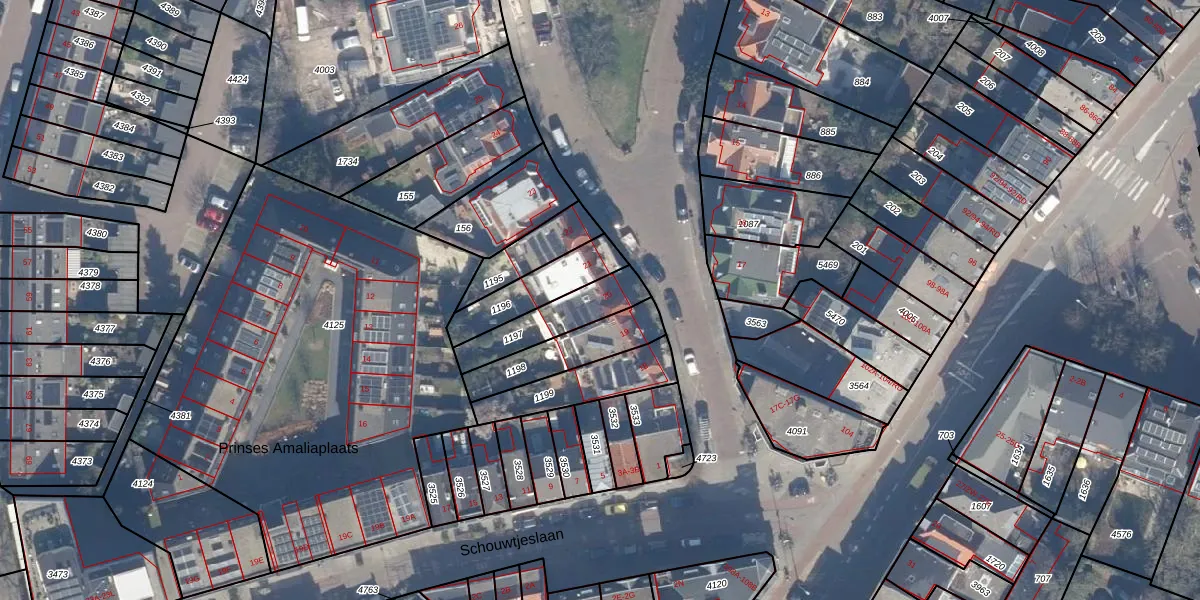 Gebruik de zoekbalk of klik op een perceel voor informatie over de adressen binnen dit perceel.