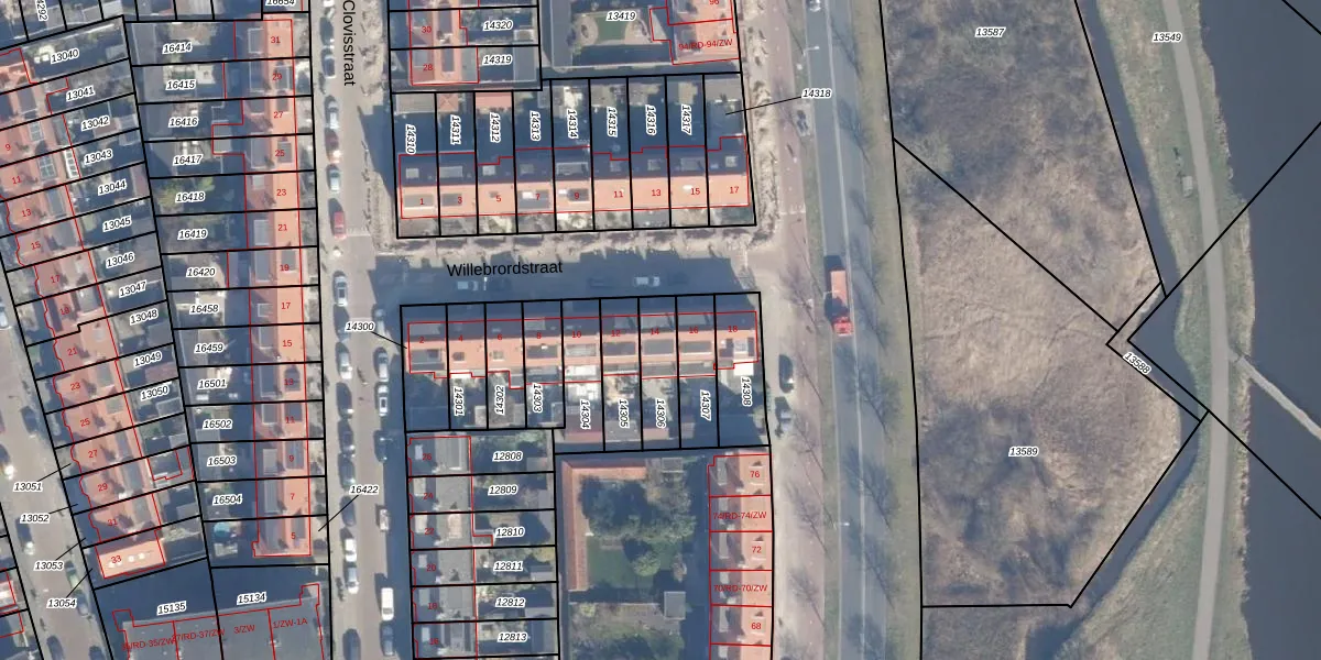 Willebrordstraat 14 is gelegen op kadastraal perceel STN01B14306. Deze kadastrale aanduiding is uniek en wordt gebruikt door het Kadaster om eigendomsrechten en andere zakelijke rechten vast te leggen. Het perceel maakt onderdeel uit van de kadastrale gemeente Schoten.