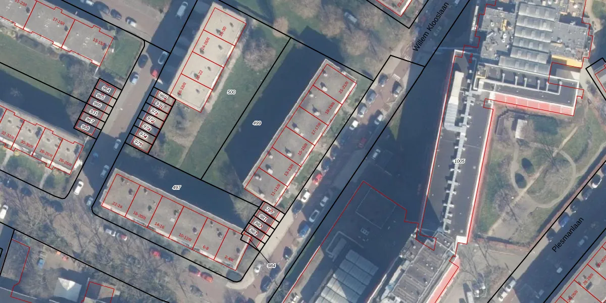 Het perceel waarop Willem Klooslaan 15 staat heeft een oppervlakte van 1658 m². Dit is een zeer groot perceel. De perceeloppervlakte wordt geregistreerd door het Kadaster. Gedetailleerde informatie over de maten van dit perceel kunt u vinden in het rapport Kadastrale kaart met maatvoering van Willem Klooslaan 15.