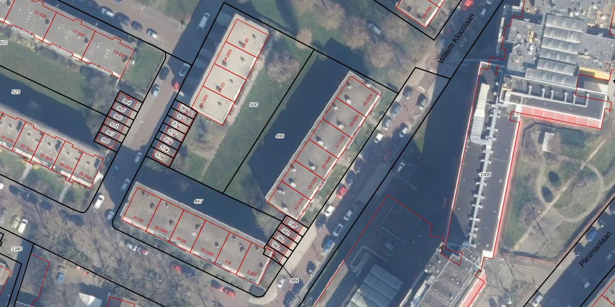 Het perceel waarop Willem Klooslaan 15-II staat heeft een oppervlakte van 1658 m². Dit is een zeer groot perceel. De perceeloppervlakte wordt geregistreerd door het Kadaster. Gedetailleerde informatie over de maten van dit perceel kunt u vinden in het rapport Kadastrale kaart met maatvoering van Willem Klooslaan 15-II.