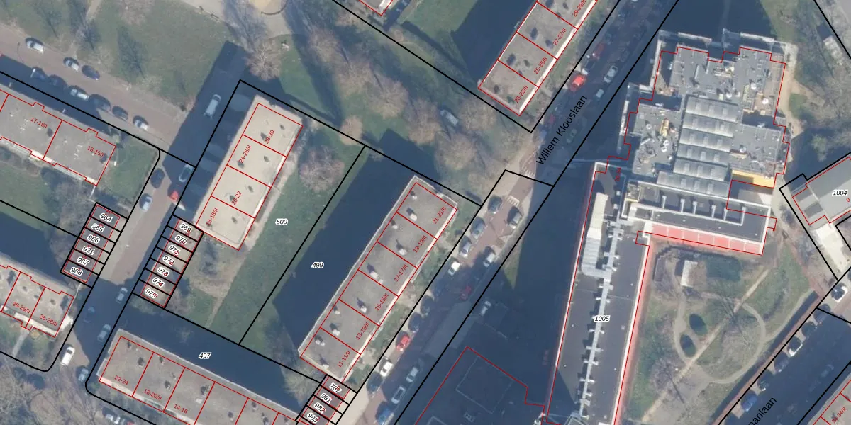 Het perceel waarop Willem Klooslaan 21-I staat heeft een oppervlakte van 1658 m². Dit is een zeer groot perceel. De perceeloppervlakte wordt geregistreerd door het Kadaster. Gedetailleerde informatie over de maten van dit perceel kunt u vinden in het rapport Kadastrale kaart met maatvoering van Willem Klooslaan 21-I.