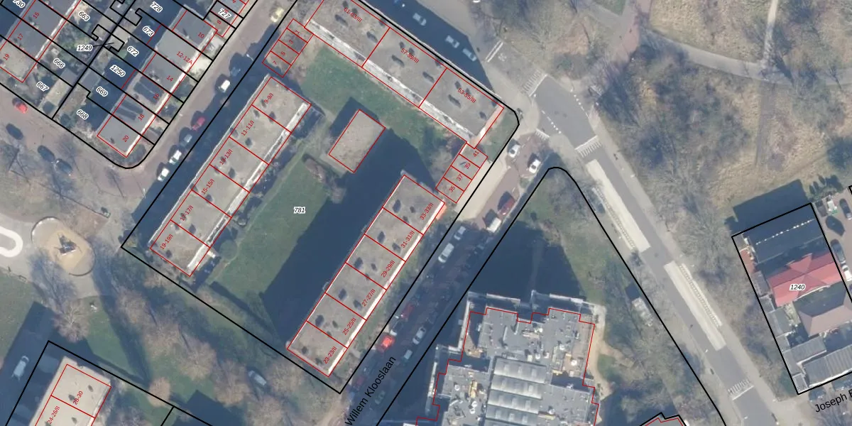 Het perceel waarop Willem Klooslaan 33 staat heeft een oppervlakte van 4744 m². Dit is een zeer groot perceel. De perceeloppervlakte wordt geregistreerd door het Kadaster. Gedetailleerde informatie over de maten van dit perceel kunt u vinden in het rapport Kadastrale kaart met maatvoering van Willem Klooslaan 33.