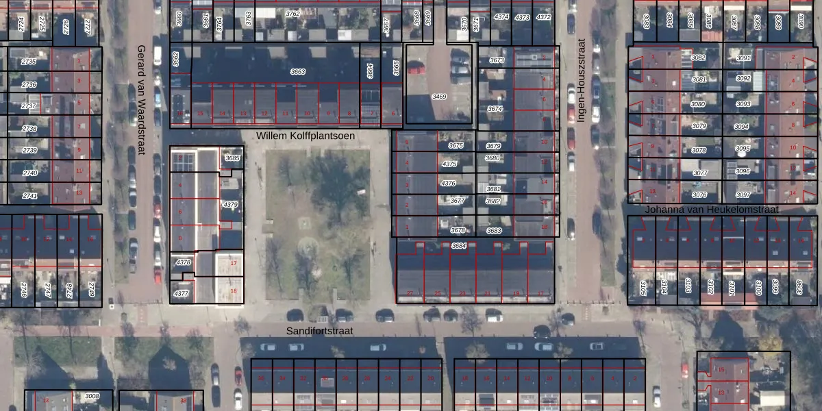 Gebruik de zoekbalk of klik op een perceel voor informatie over de adressen binnen dit perceel.
