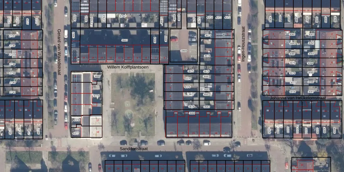 Willem Kolffplantsoen 3 is gelegen op kadastraal perceel HLM02P4376. Deze kadastrale aanduiding is uniek en wordt gebruikt door het Kadaster om eigendomsrechten en andere zakelijke rechten vast te leggen. Het perceel maakt onderdeel uit van de kadastrale gemeente Haarlem.
