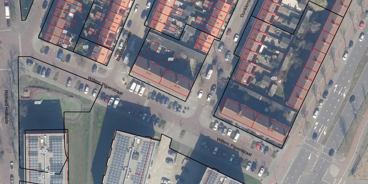 Willem Pijperstraat 25 is gelegen op kadastraal perceel HLM02Q505. Deze kadastrale aanduiding is uniek en wordt gebruikt door het Kadaster om eigendomsrechten en andere zakelijke rechten vast te leggen. Het perceel maakt onderdeel uit van de kadastrale gemeente Haarlem.