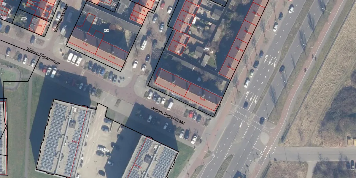 Willem Pijperstraat 33 is gelegen op kadastraal perceel HLM02Q504. Deze kadastrale aanduiding is uniek en wordt gebruikt door het Kadaster om eigendomsrechten en andere zakelijke rechten vast te leggen. Het perceel maakt onderdeel uit van de kadastrale gemeente Haarlem.
