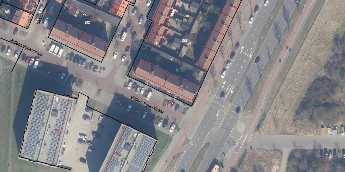 Willem Pijperstraat 41 is gelegen op kadastraal perceel HLM02Q504. Deze kadastrale aanduiding is uniek en wordt gebruikt door het Kadaster om eigendomsrechten en andere zakelijke rechten vast te leggen. Het perceel maakt onderdeel uit van de kadastrale gemeente Haarlem.