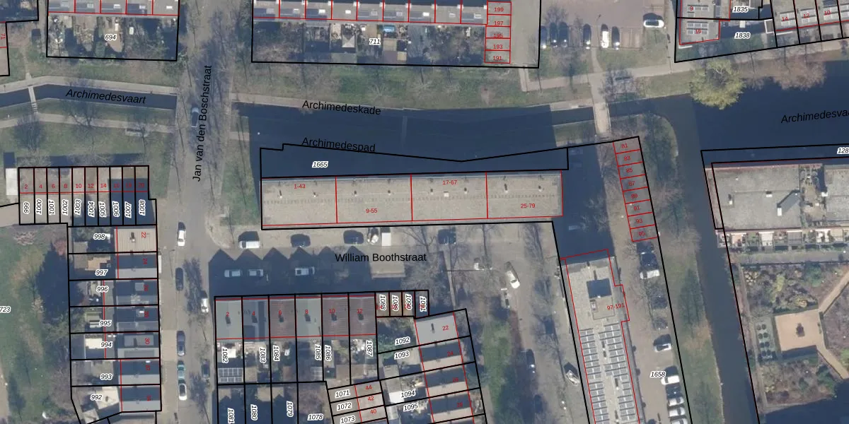 Het perceel waarop William Boothstraat 17 staat heeft een oppervlakte van 3230 m². Dit is een zeer groot perceel. De perceeloppervlakte wordt geregistreerd door het Kadaster. Gedetailleerde informatie over de maten van dit perceel kunt u vinden in het rapport Kadastrale kaart met maatvoering van William Boothstraat 17.