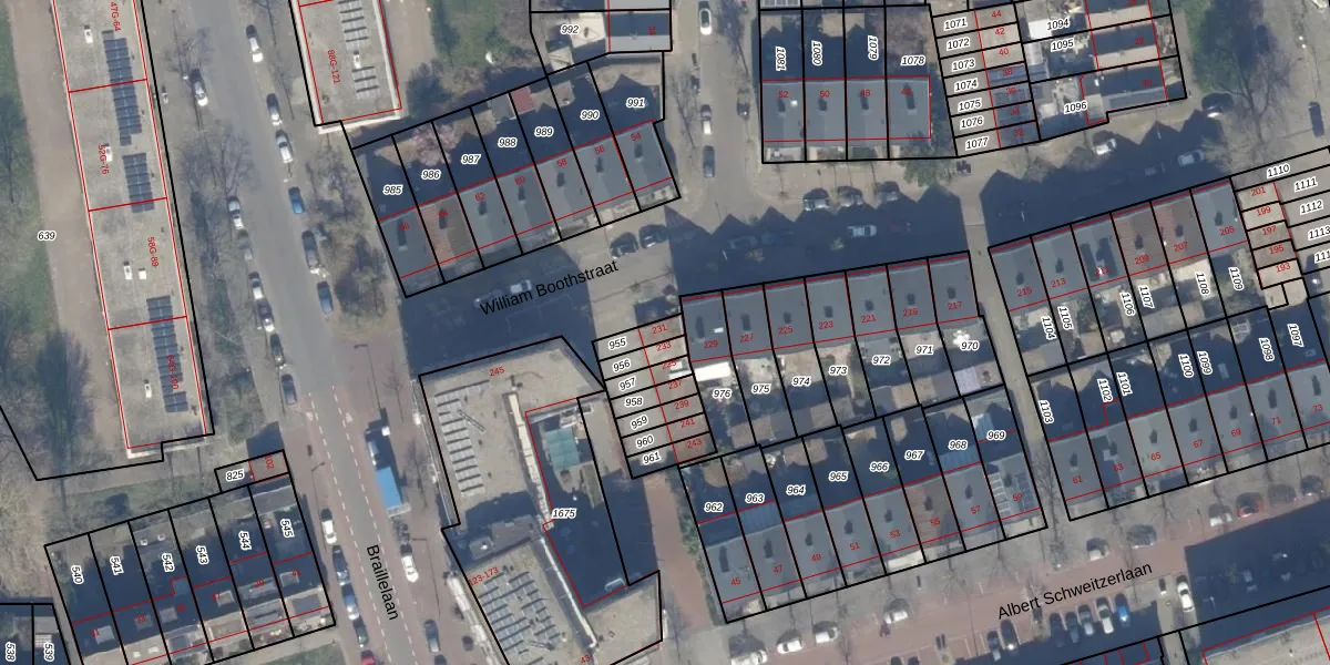 Het perceel waarop William Boothstraat 231 staat heeft een oppervlakte van 44 m². Dit is een klein perceel. De perceeloppervlakte wordt geregistreerd door het Kadaster. Gedetailleerde informatie over de maten van dit perceel kunt u vinden in het rapport Kadastrale kaart met maatvoering van William Boothstraat 231.