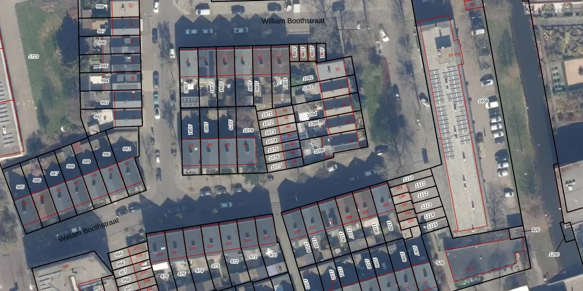 William Boothstraat 36 is gelegen op kadastraal perceel HLM02X1075. Deze kadastrale aanduiding is uniek en wordt gebruikt door het Kadaster om eigendomsrechten en andere zakelijke rechten vast te leggen. Het perceel maakt onderdeel uit van de kadastrale gemeente Haarlem.