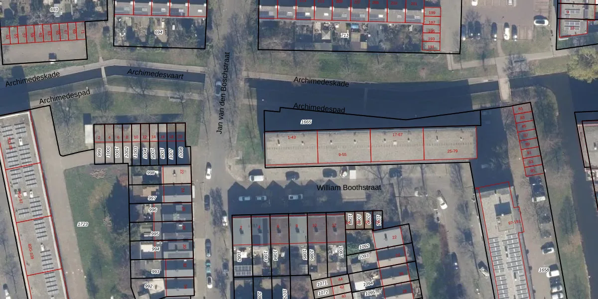 Het perceel waarop William Boothstraat 41 staat heeft een oppervlakte van 3230 m². Dit is een zeer groot perceel. De perceeloppervlakte wordt geregistreerd door het Kadaster. Gedetailleerde informatie over de maten van dit perceel kunt u vinden in het rapport Kadastrale kaart met maatvoering van William Boothstraat 41.