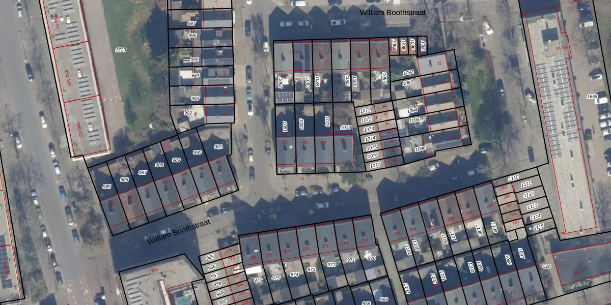 William Boothstraat 50 is gelegen op kadastraal perceel HLM02X1080. Deze kadastrale aanduiding is uniek en wordt gebruikt door het Kadaster om eigendomsrechten en andere zakelijke rechten vast te leggen. Het perceel maakt onderdeel uit van de kadastrale gemeente Haarlem.