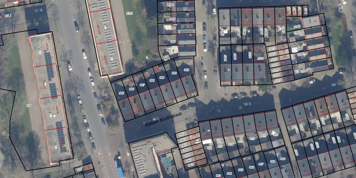 William Boothstraat 56 is gelegen op kadastraal perceel HLM02X990. Deze kadastrale aanduiding is uniek en wordt gebruikt door het Kadaster om eigendomsrechten en andere zakelijke rechten vast te leggen. Het perceel maakt onderdeel uit van de kadastrale gemeente Haarlem.