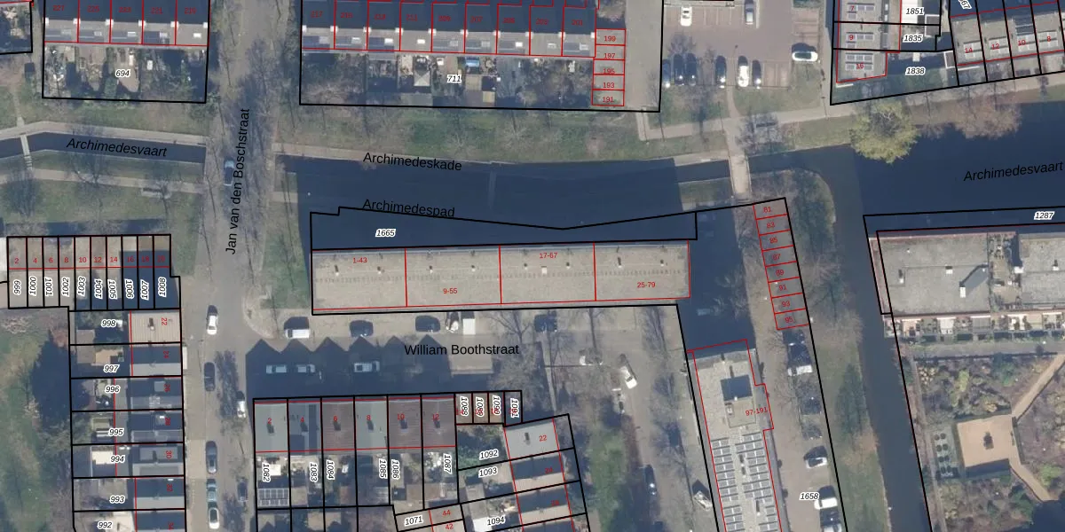 Het perceel waarop William Boothstraat 61 staat heeft een oppervlakte van 3230 m². Dit is een zeer groot perceel. De perceeloppervlakte wordt geregistreerd door het Kadaster. Gedetailleerde informatie over de maten van dit perceel kunt u vinden in het rapport Kadastrale kaart met maatvoering van William Boothstraat 61.